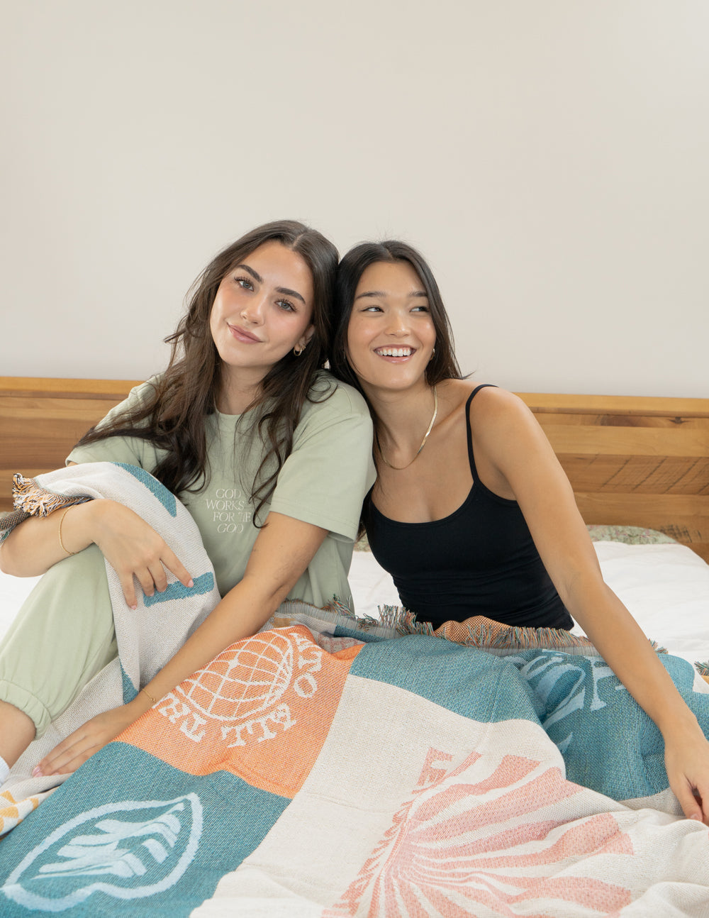 Level up your lounge days with our Patchwork Throw Blanket. With its unique message woven into the design, this throw will keep you cozy and comforted while journaling or slowing down this season.