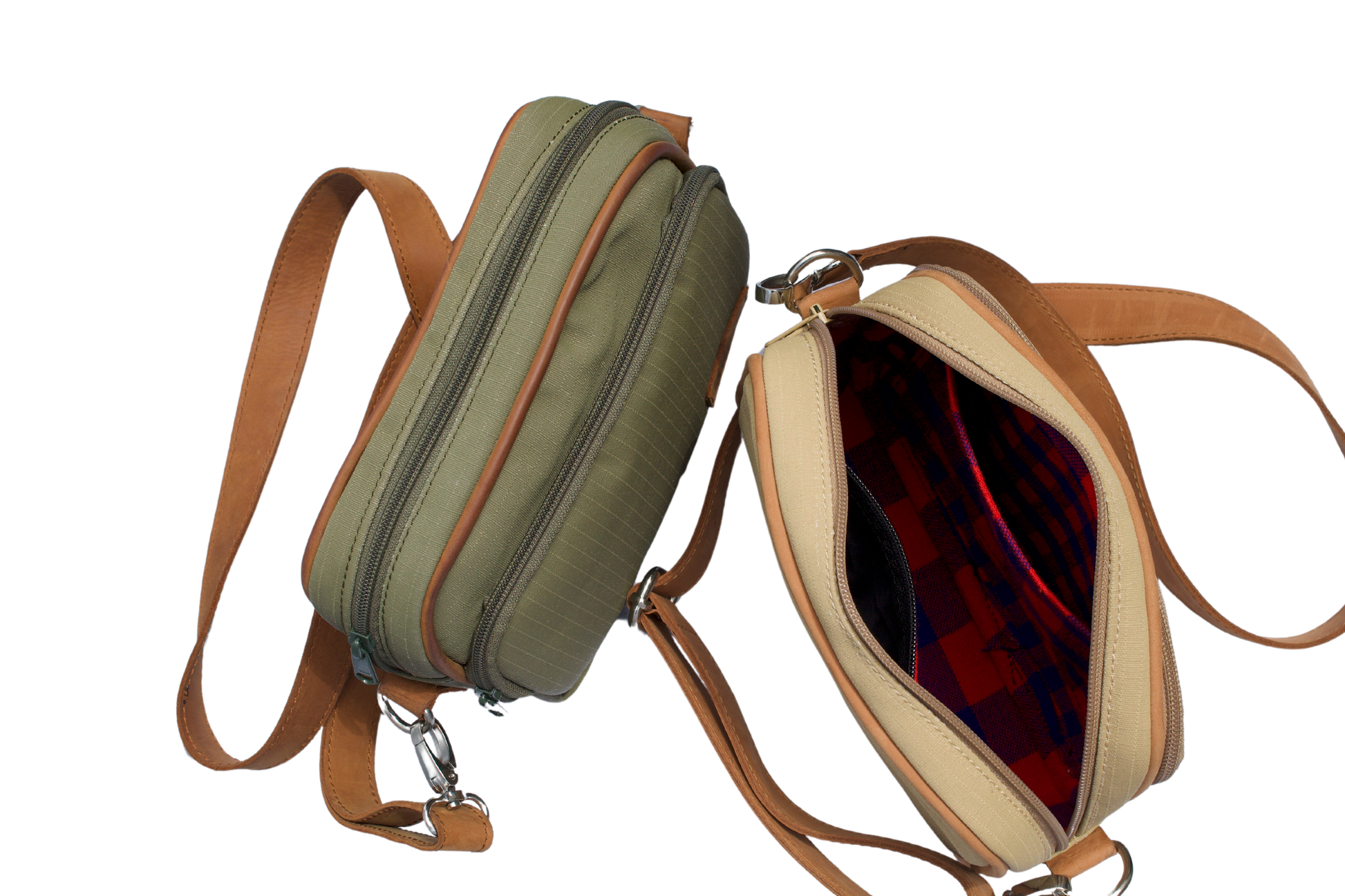 The Bum Bag is designed with versatility in mind! Crafted with full-grain leather and ripstop canvas, this crossbody bag will be useful to carry your essentials while on Safari or on your commute to work. It is lined with Maasai Shuka and has two inner pockets and an outer zip.